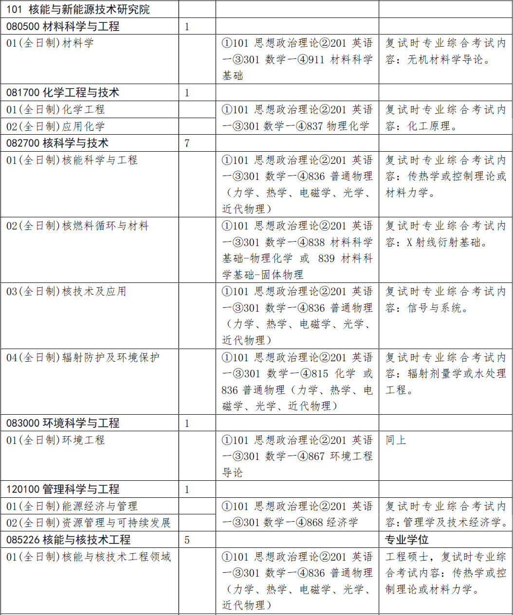 2019年清华大学核能与新能源技术研究院考研招生专业、招生人数、考试科目