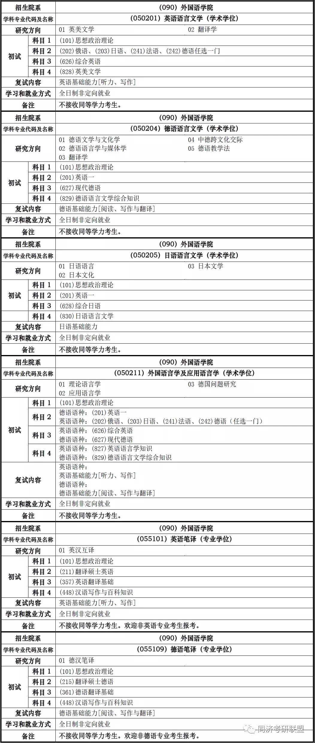 2019年同济大学电子与信息工程学院考研招生专业、考试科目