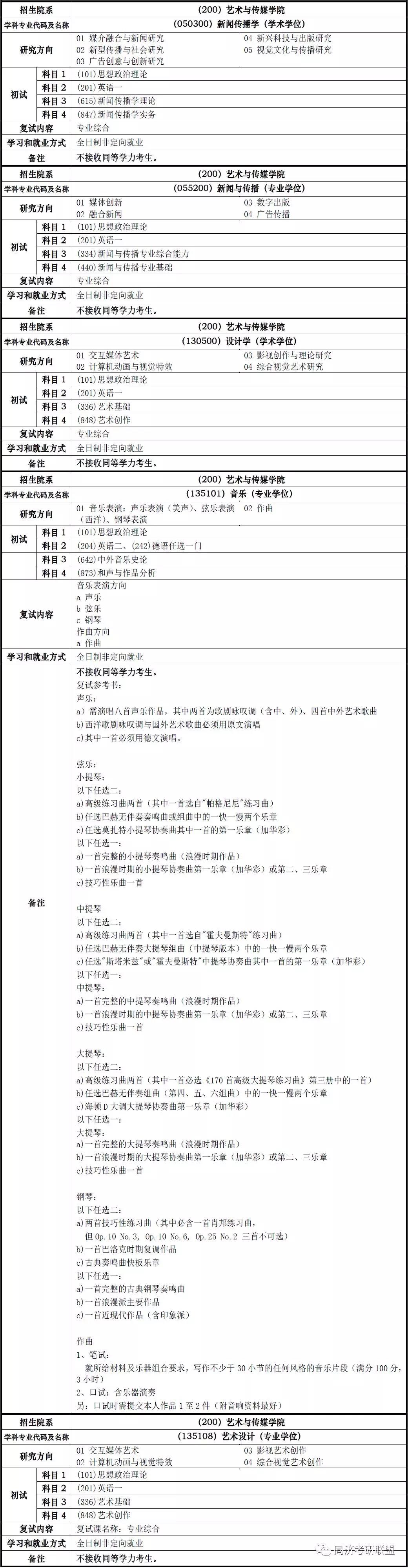 2019年同济大学艺术与传媒学院考研招生专业、考试科目