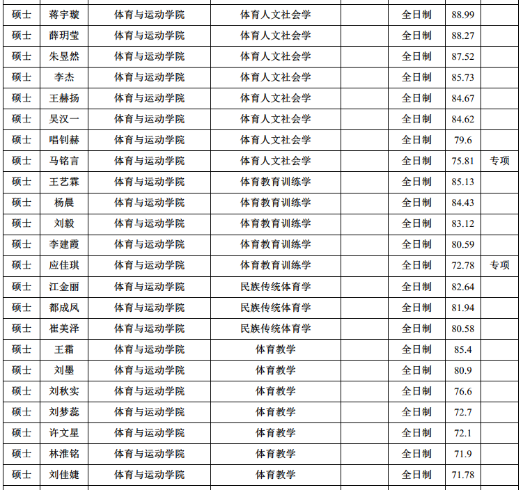 2019年北京师范大学体育与运动学院研究生推免拟录取名单