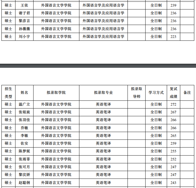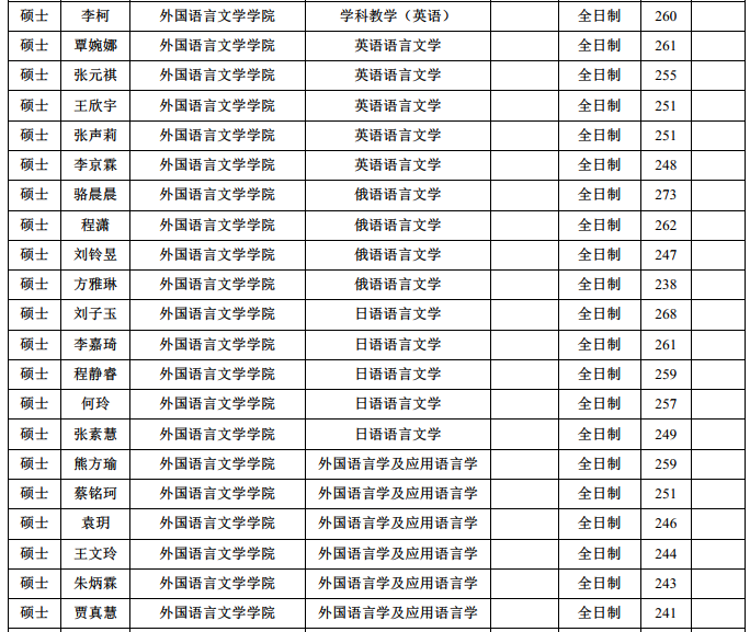 2019年北京师范大学外国语言文学学院研究生推免拟录取名单