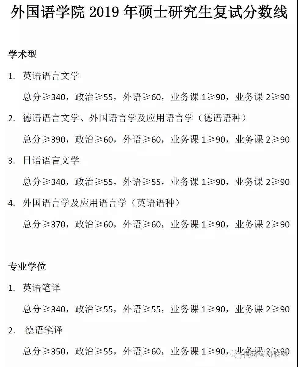 同济大学外国语学院2019年复试分数线