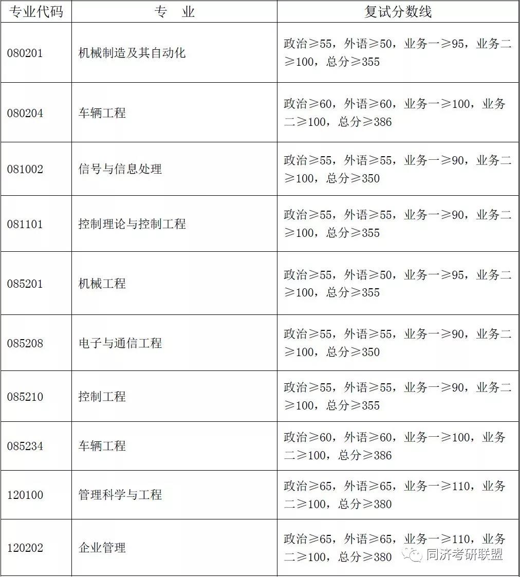 同济大学中德学院2019年复试分数线