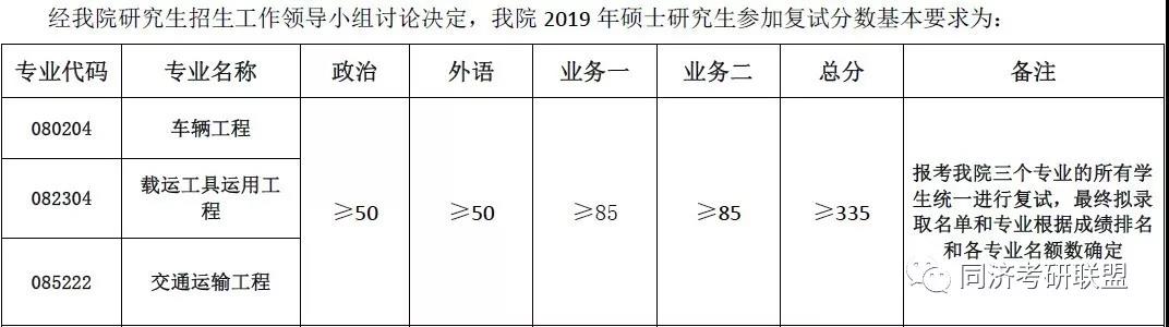 同济大学铁道与城市轨道交通研究院2019年复试分数线