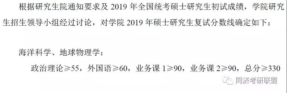 同济大学海洋与地球科学学院2019年复试分数线
