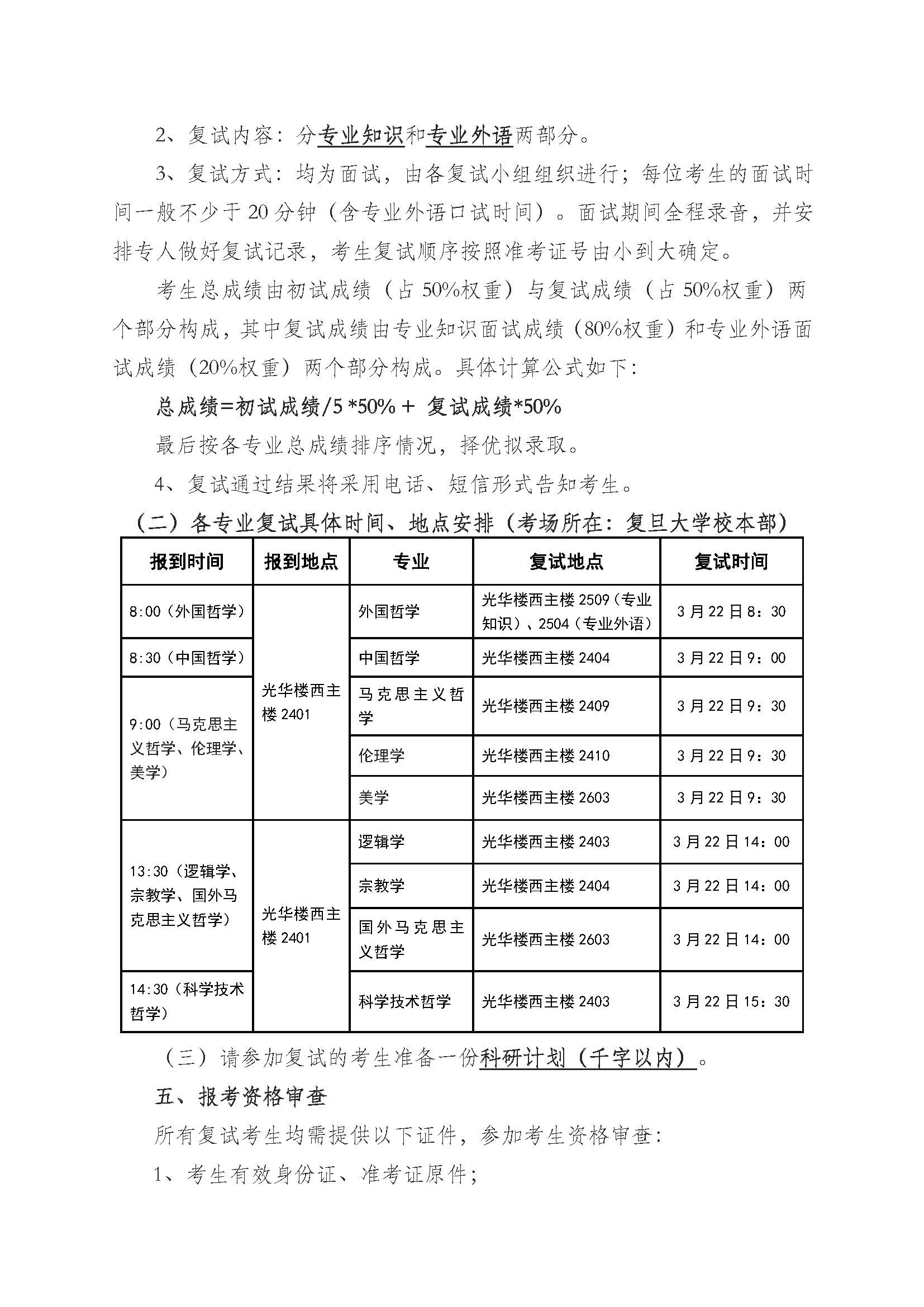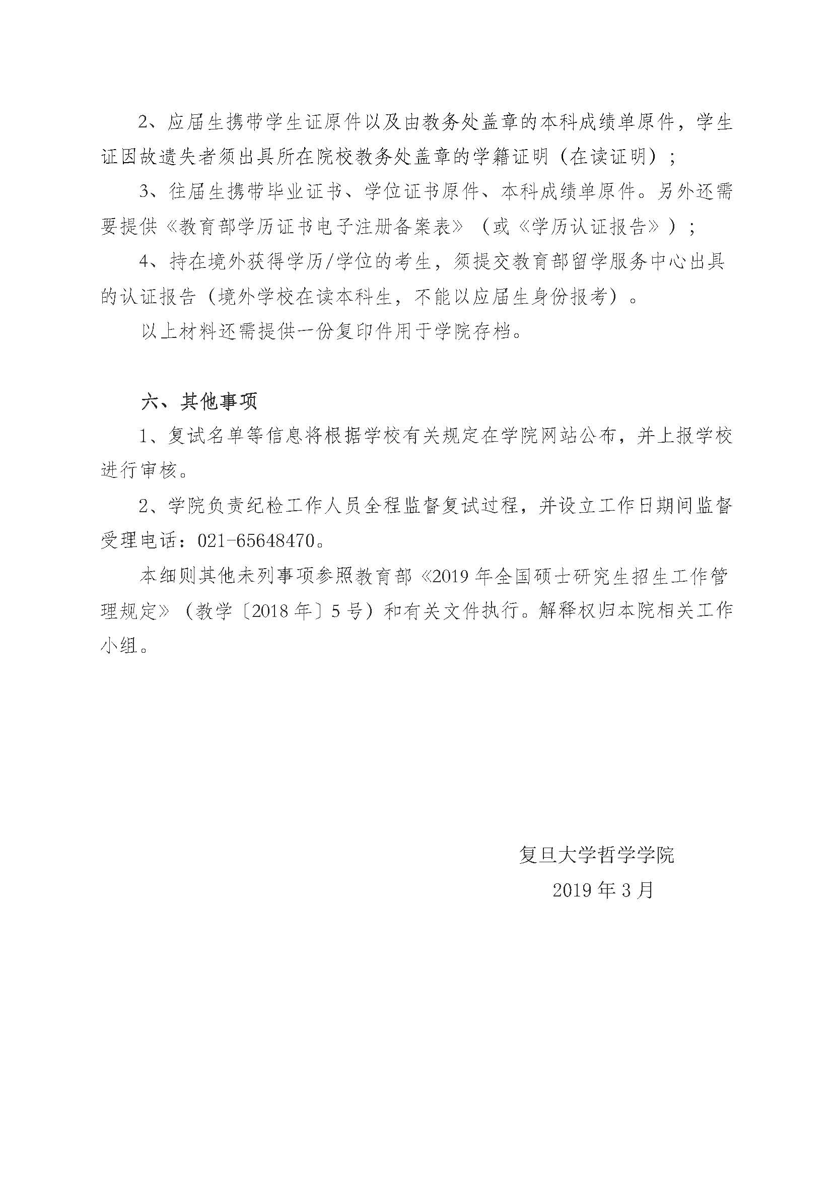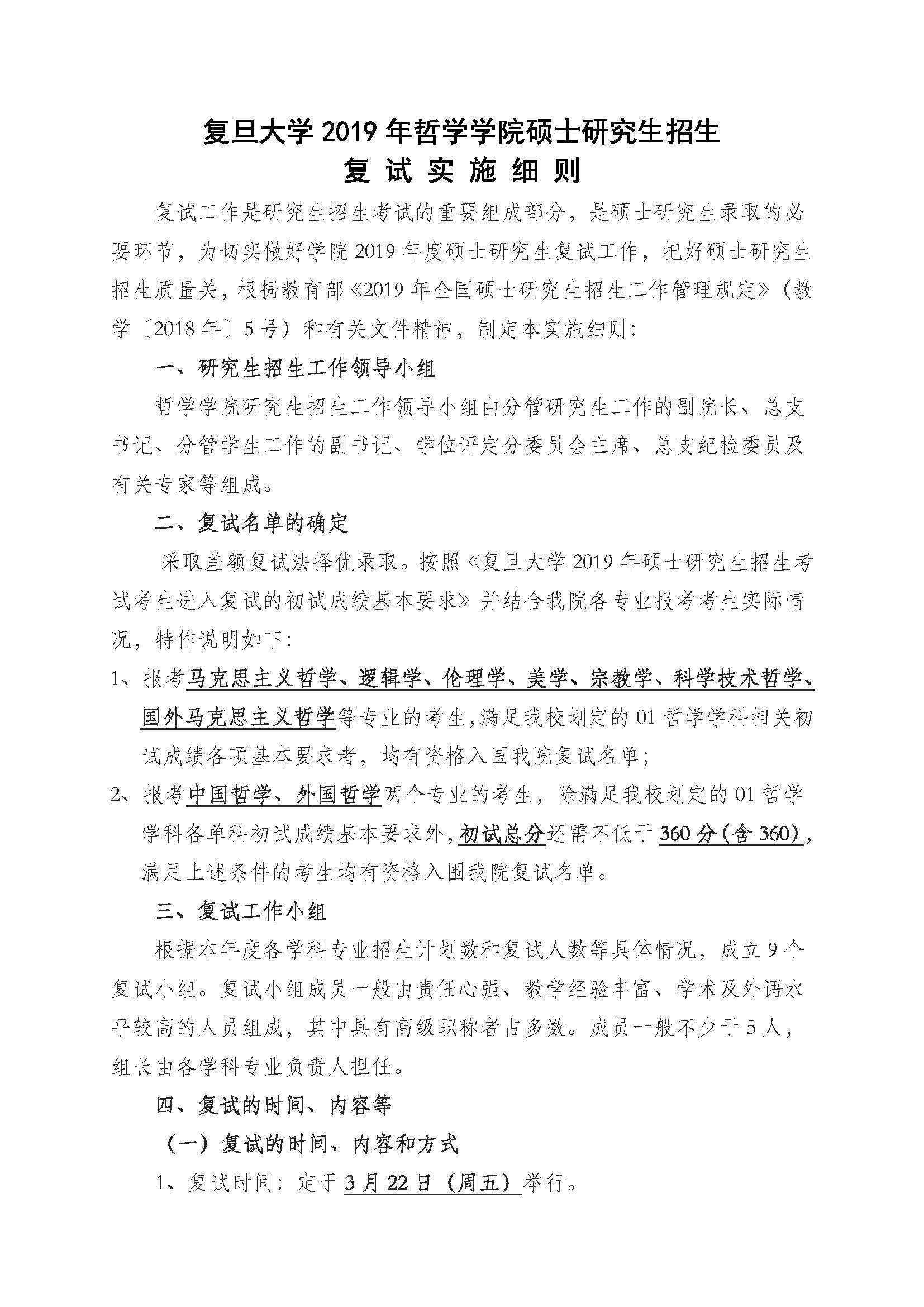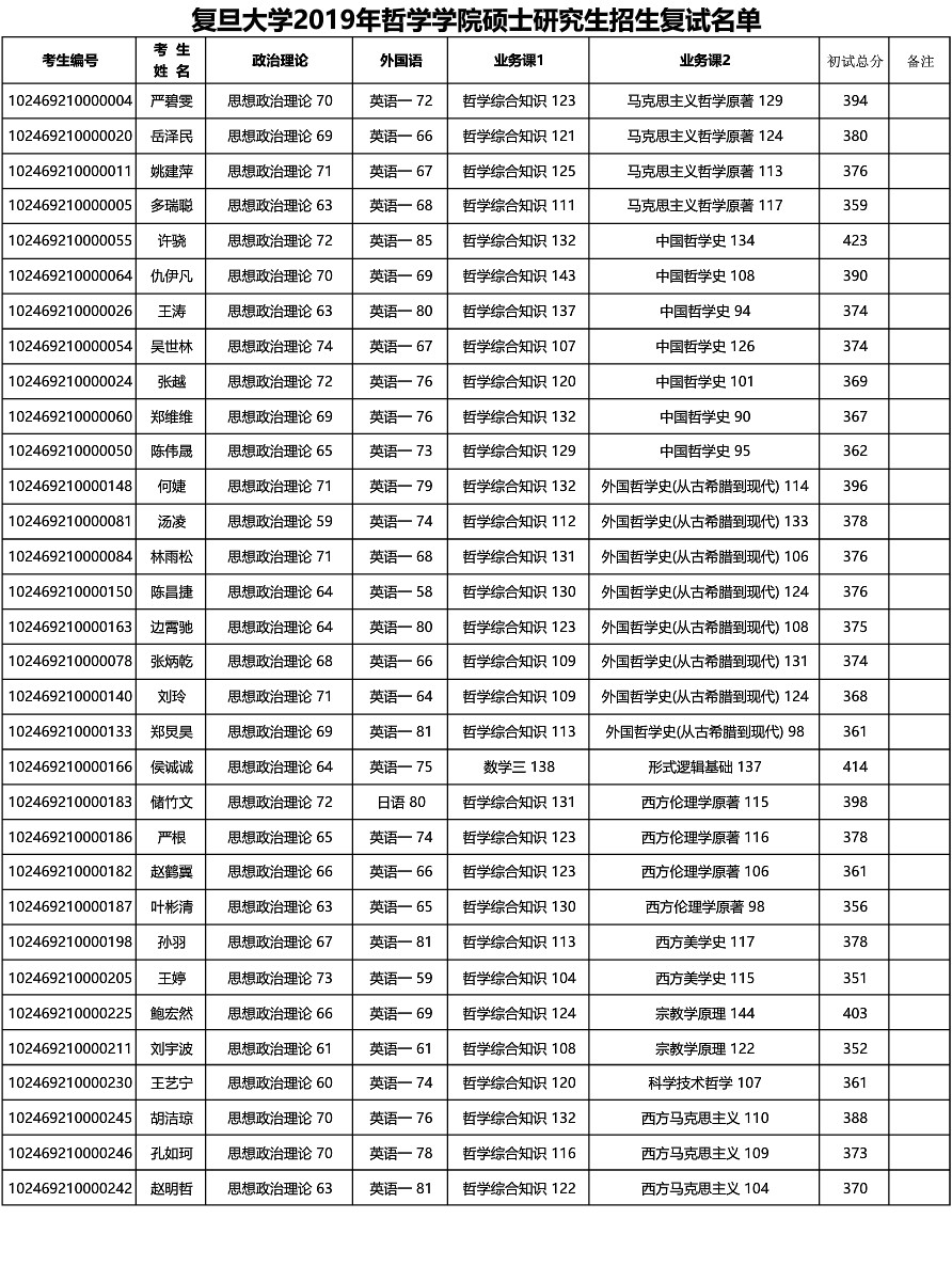复旦大学哲学学院2019年硕士研究生复试名单及复试细则