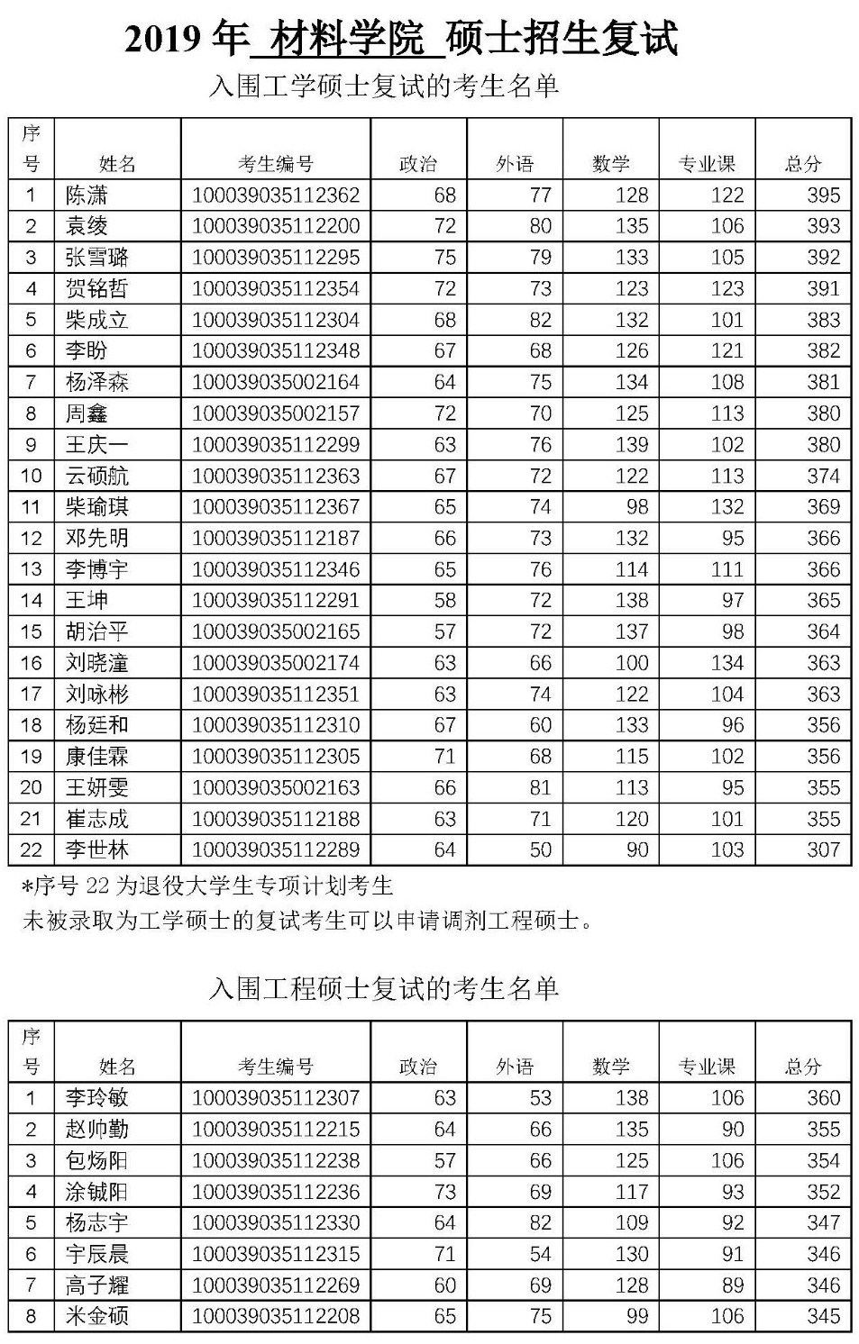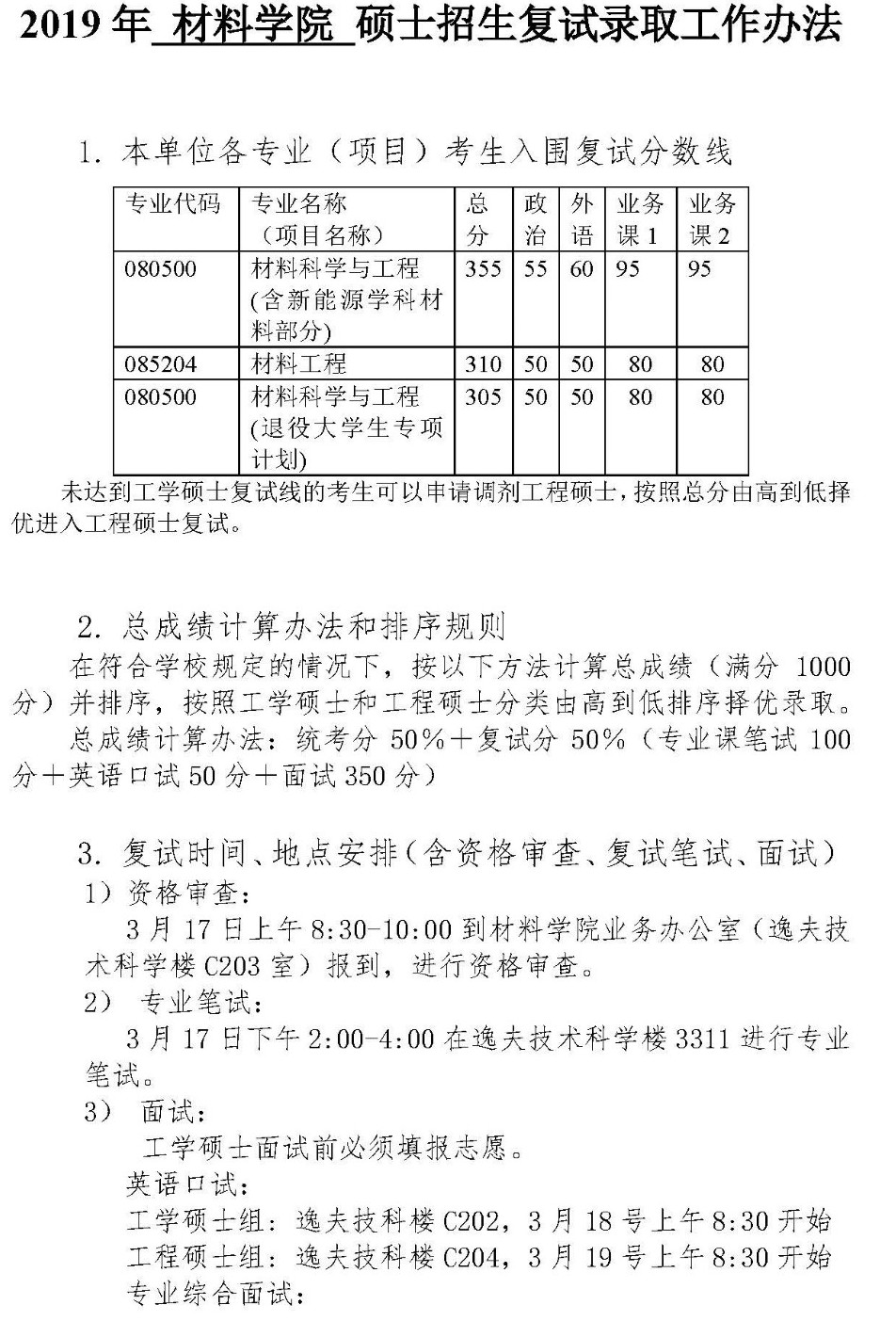 2019年清华大学材料学院复试分数线及名单