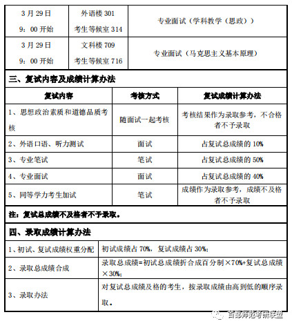 2019年首师大马克思主义学院硕士研究生复试录取方案