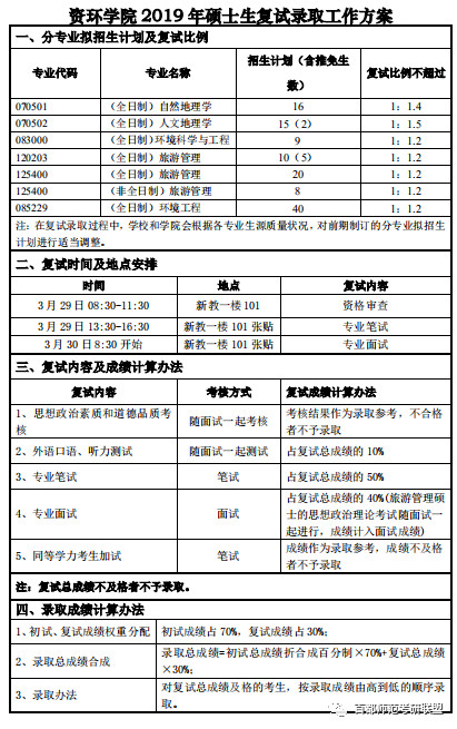 2019年首师大资环学院硕士研究生复试录取工作方案