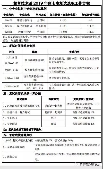 2019年首师大教育技术系硕士研究生复试录取工作方案