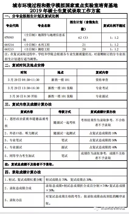 2019年首师大城市环境过程和数字模拟实验基地考研硕士生复试录取工作方案