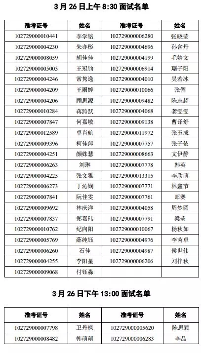 1、专业面试:请考生按照每场复试时间,提前二十分钟进入凤凰楼 302 候场。考生在面试和候场过程中,禁止使用手机等通讯工具。每位考生进入考场后,请先提交下列材料至面试小组秘书老师处,然后进行面试。下一名面试的考生由巡考老师带领至该组候考处等候。专业面试结束后,考生应立即离开考场。