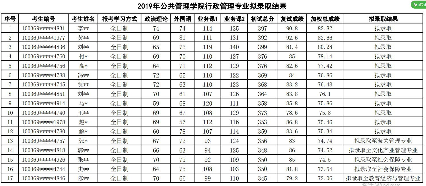 2019年对外经济贸易大学行政管理考研拟录取名单公示