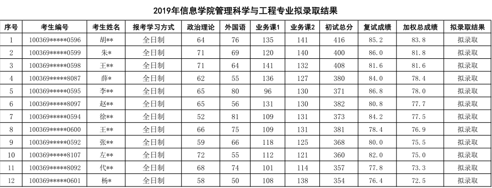 2019年对外经济贸易大学管理科学与工程专业硕士研究生拟录取名单