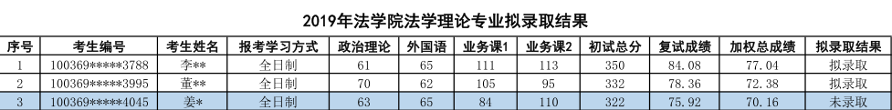 2019年对外经济贸易大学刑法学专业硕士研究生拟录取名单