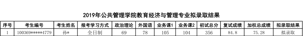 2019年对外经济贸易大学教育经济与管理专业研究生拟录取名单