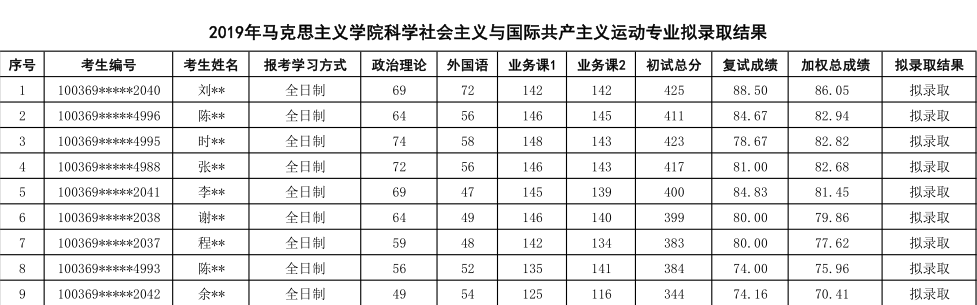 2019年对外经济贸易大学科学社会主义与国际共产主义运动专业硕士研究生拟录取名单