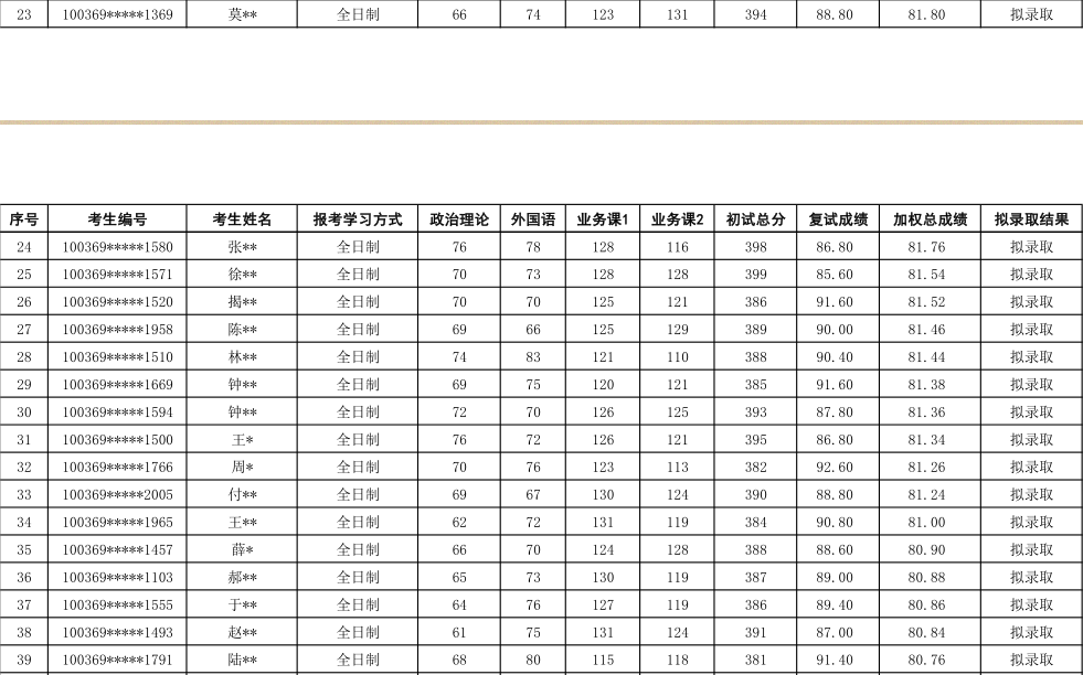 2019年对外经济贸易大学工商管理硕士(MBA全日制)专业研究生拟录取名单