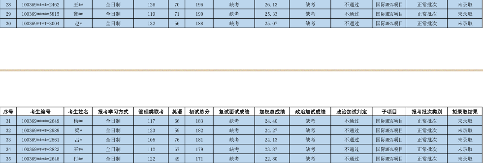 2019年对外经济贸易大学工商管理硕士(MBA非全日制)专业研究生拟录取名单