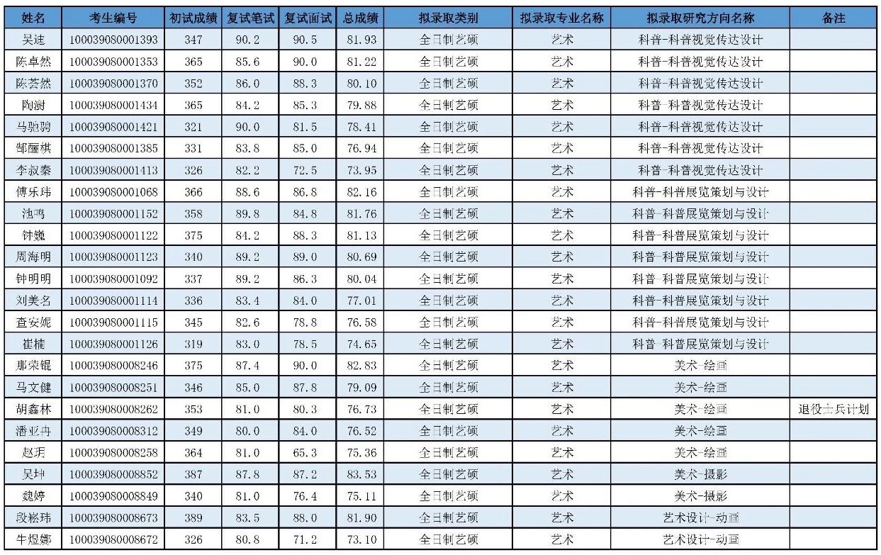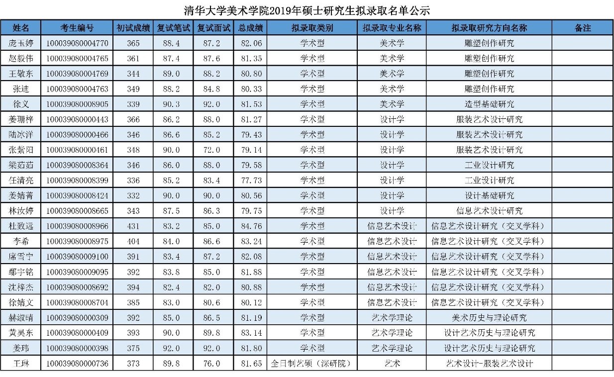 2019年清华大学数学科学学系硕士研究生拟录取名单