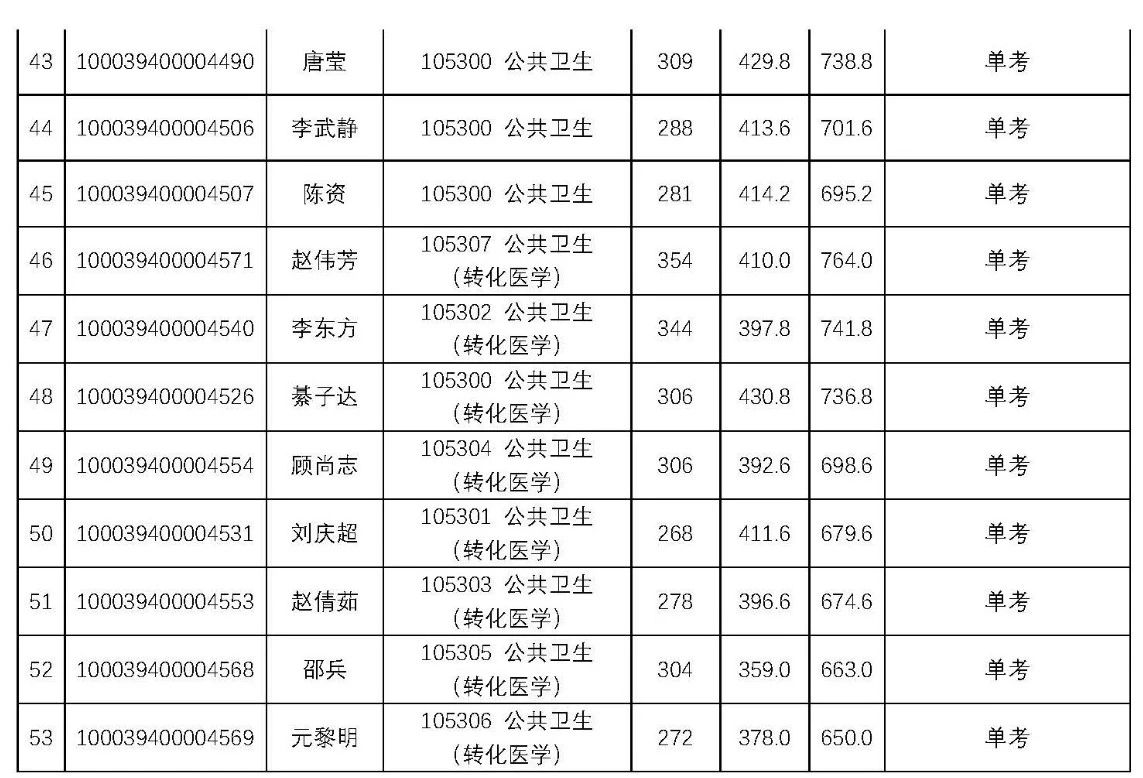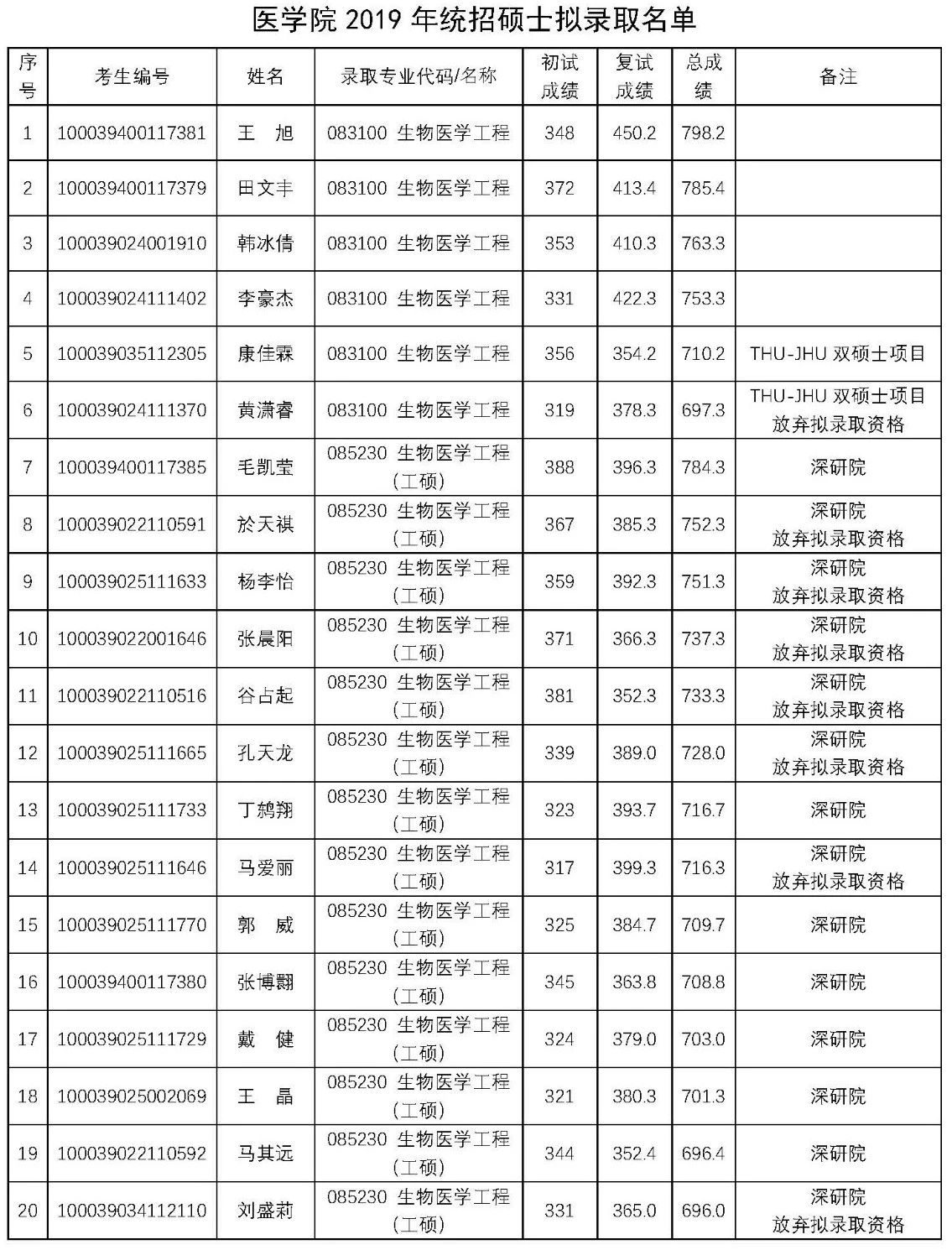 2019年清华大学医学院硕士研究生拟录取名单