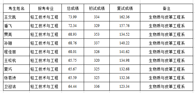 现将轻纺与食品学院2019年硕士调剂生入学拟录取名单公示(第一批生物质与皮革工程系)。如有问题或意见,自公示之日起十个工作日内,实名制反映至轻纺与食品学院纪委办公室。邮箱21891419@qq.com,联系电话028-85403113。