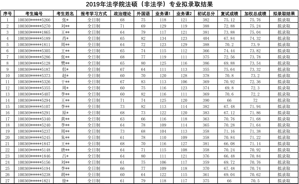 2019年对外经济贸易大学法律硕士(法学)专业研究生拟录取名单