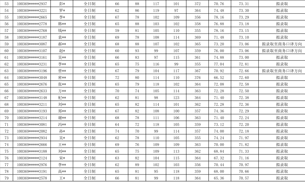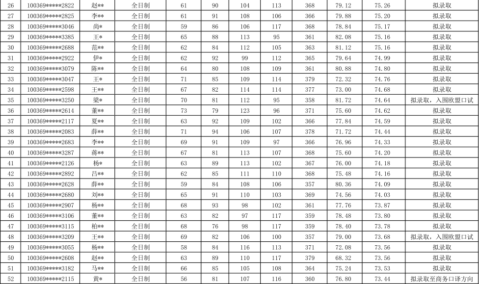 2019年对外经济贸易大学英语笔译专业硕士研究生拟录取名单