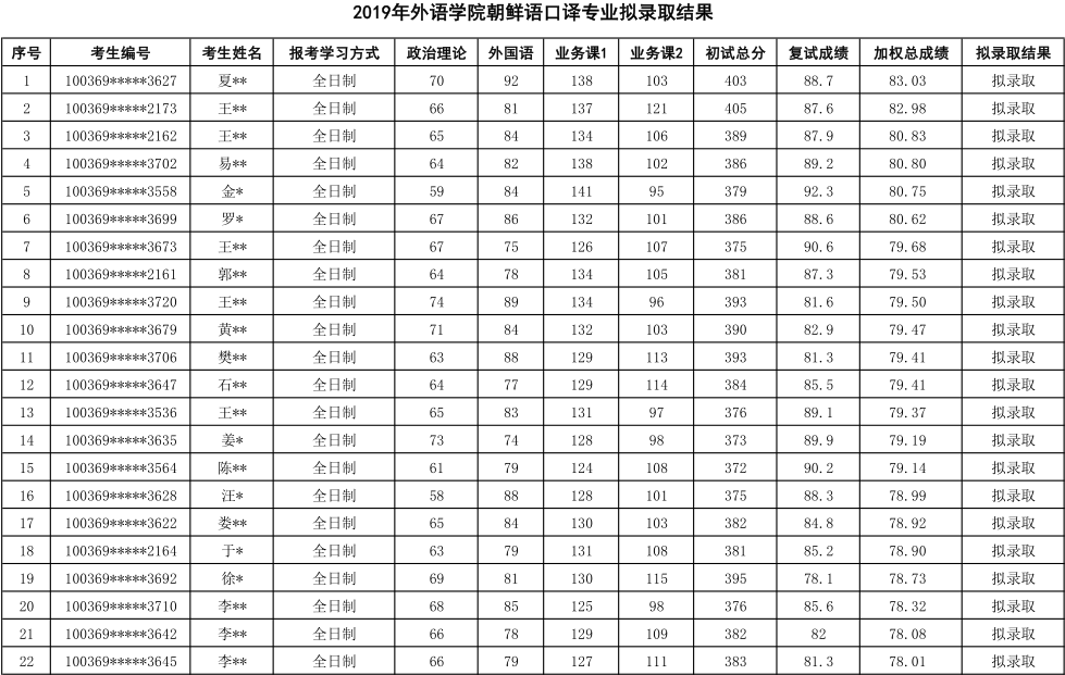 2019年对外经济贸易大学朝鲜语口译专业硕士研究生拟录取名单