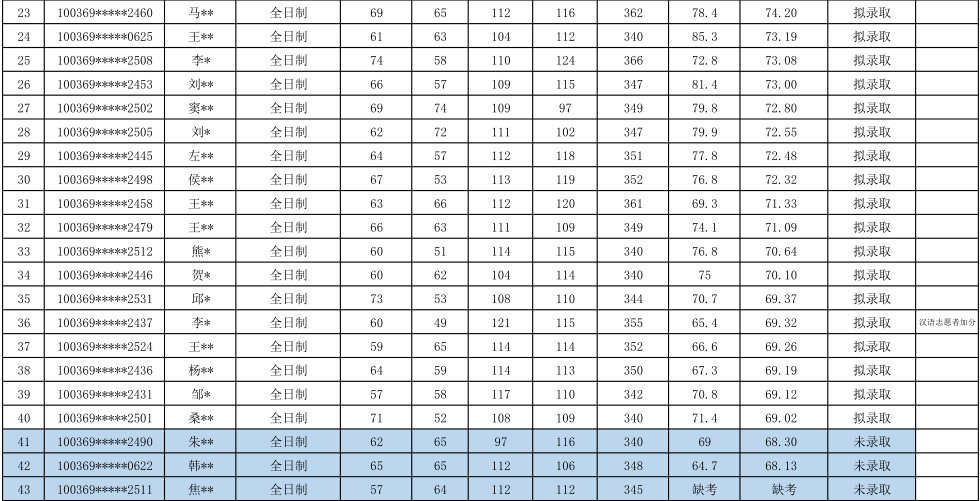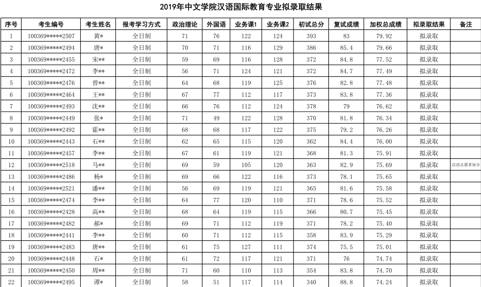 2019年对外经济贸易大学汉语国际教育硕士专业研究生拟录取名单