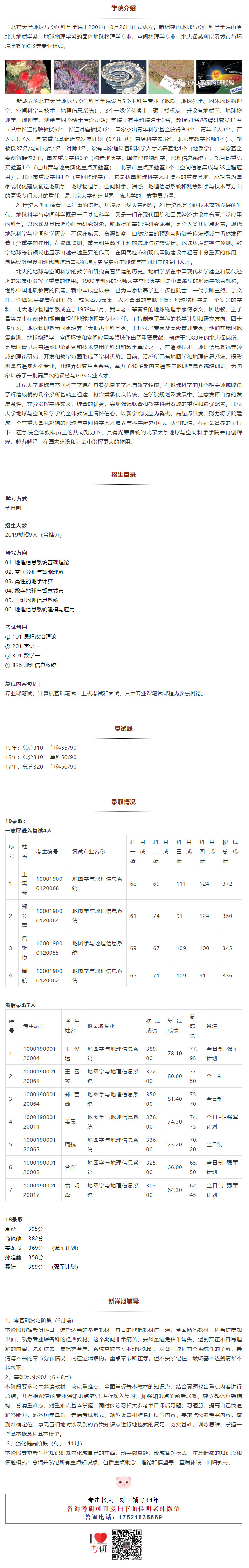 2020北京大学地图学与地理信息系统专业考研详情介绍、经验指导