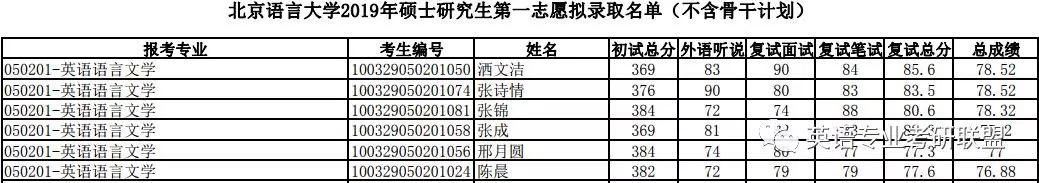 2019年北京语言大学英语语言文学录取情况