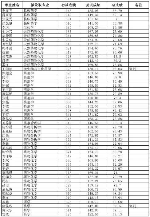 六、四川大学华西药学院2019年硕士研究生招生拟录取名单公示