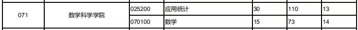 备注:数学专业由于上线人数不足,减少三个招生名额,将三个名额增加到应用统计专业;因学科发展需要,研究生院特增加十二个名额至应用统计专业。