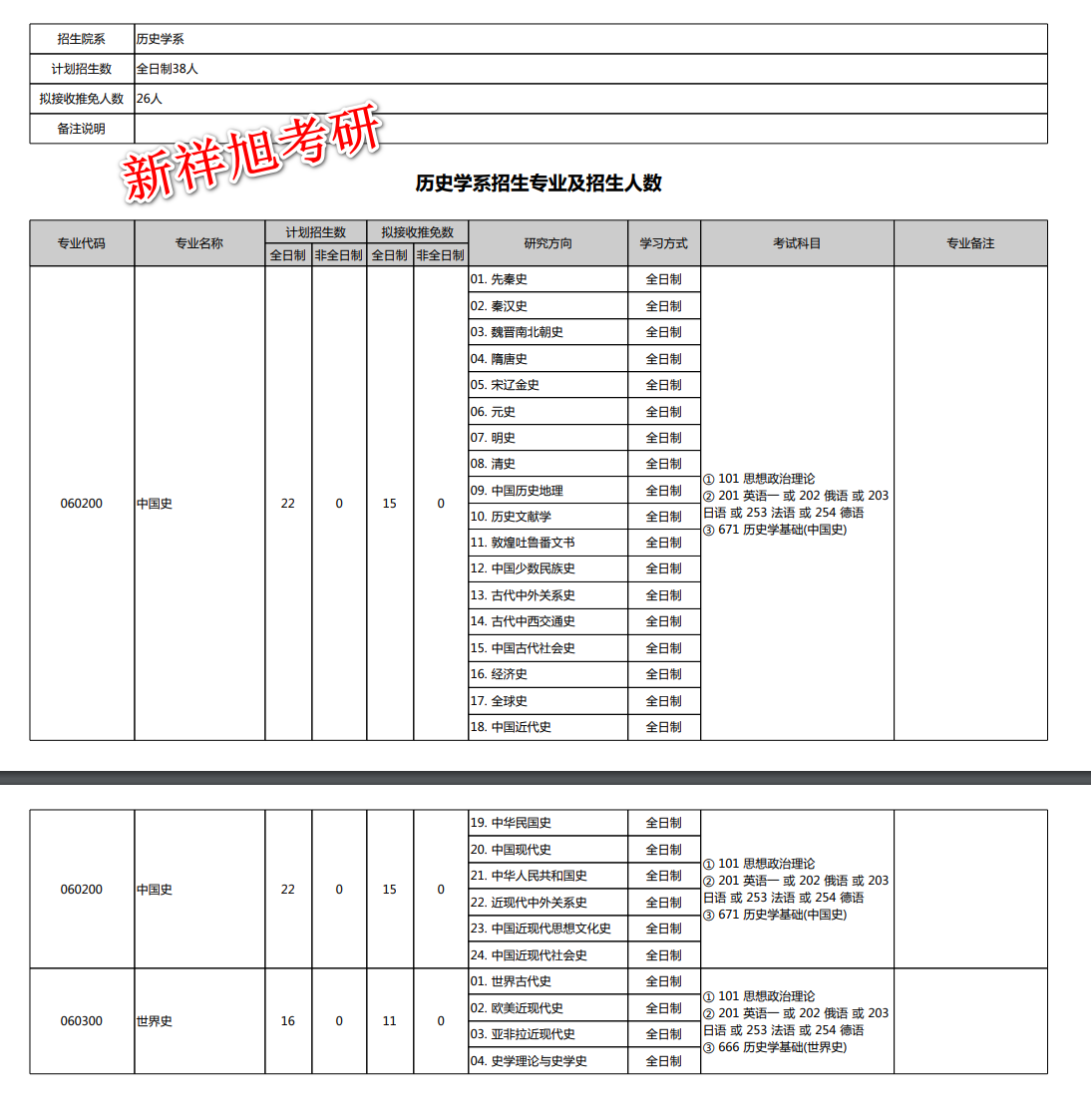 最新!2020年北京大学历史学系(校本部)研究生招生专业目录公布!