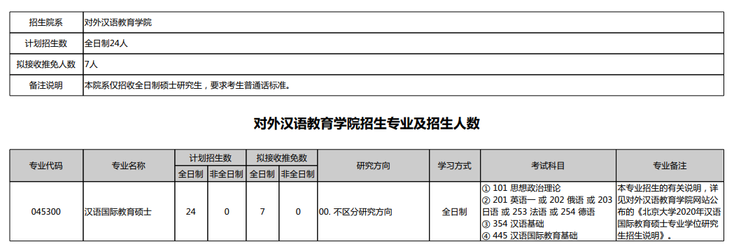 最新!2020年北京大学考对外汉语教育学院(校本部)研究生招生专业目录公布!