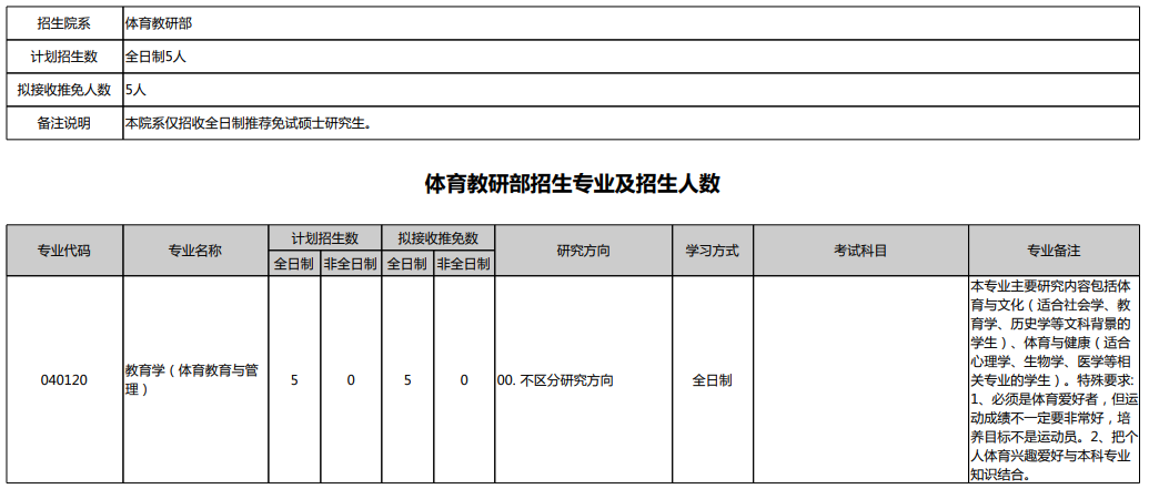 最新!2020年北京大学体育教研部(校本部)研究生招生专业目录公布!