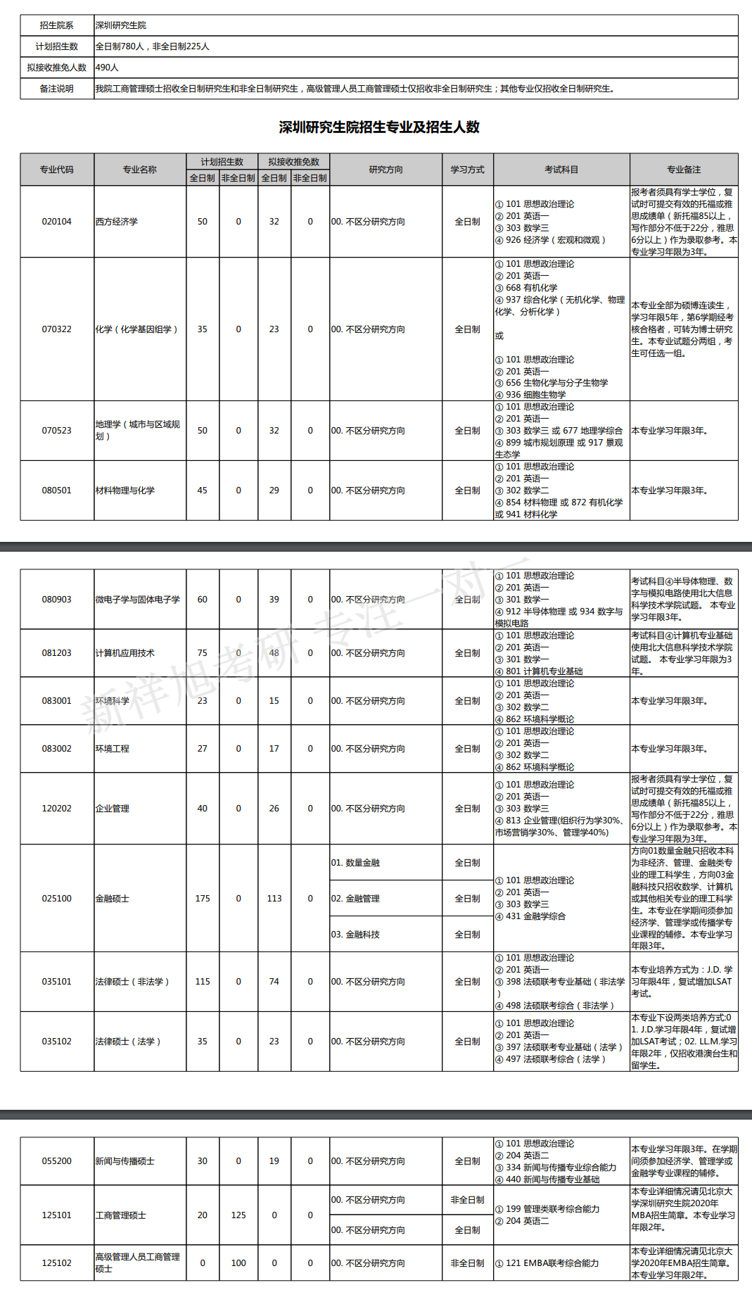 最新!2020年北京大学深圳研究生院硕士研究生招生专业目录公布!