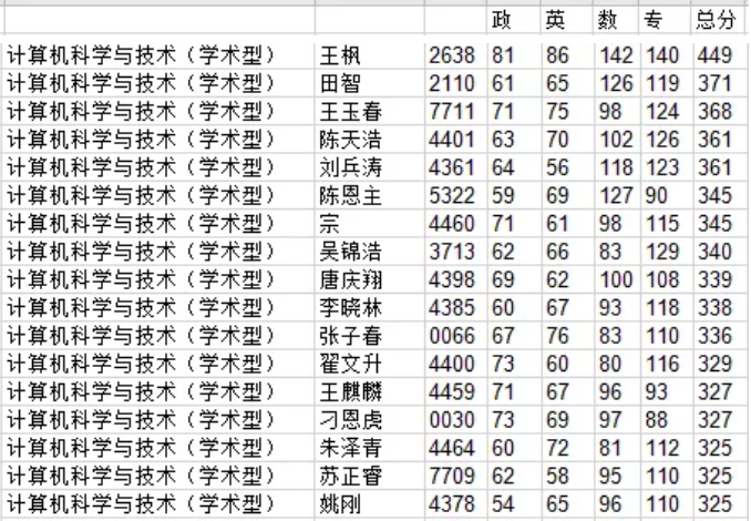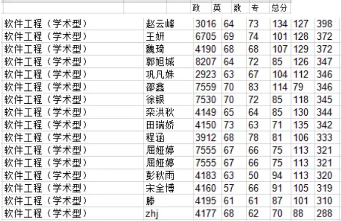 山东大学考研辅导班:2020年山东大学计软专硕考研成绩排名