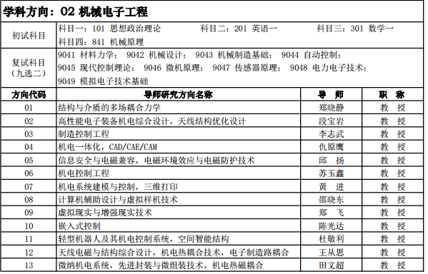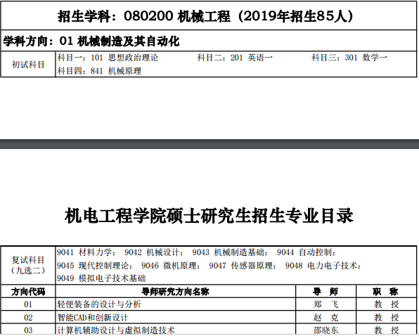 西电考研辅导班:2020西安电子科技大学机械工程招生专业目录