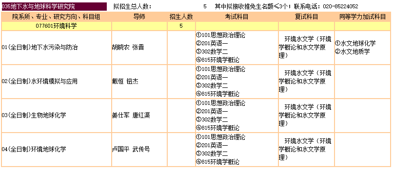 复暨南大学考研辅导班:暨南大学2020年地下水与地球科学研究院硕士研究生招生目录