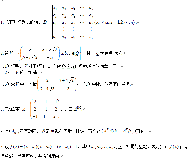 杭师大考研辅导班:2019年杭州师范大学考研高等代数838真题