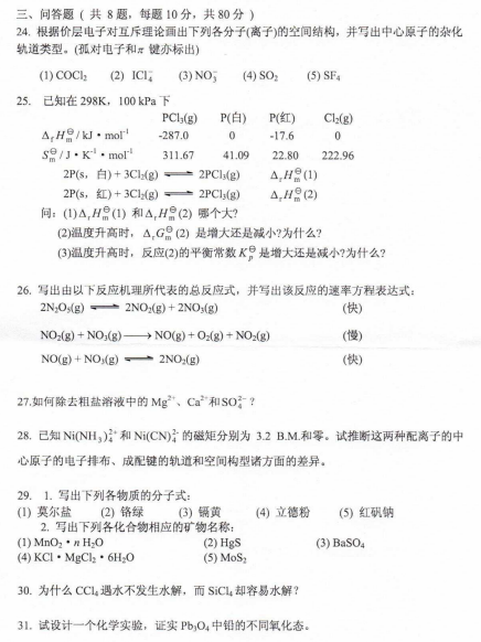 河师大考研辅导班:2018年河南师范大学考研621无机化学A真题