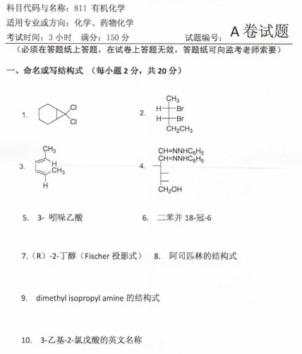 河师大考研辅导班:2018年河南师范大学考研811有机化学真题