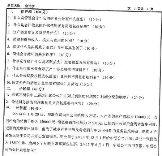 沈工大考研辅导班:2018年沈阳工业大学考研812会计学真题