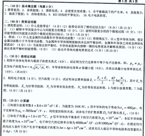 沈工大考研辅导班:2019年沈阳工业大学考研806半导体物理真题