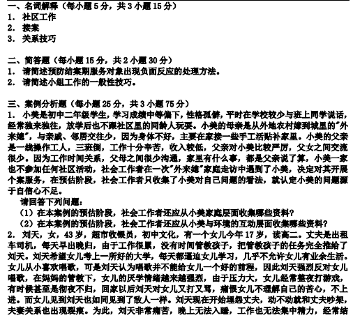 北京城市学院考研辅导班:北京城市学院2019年考研《社会工作实务》入学试题