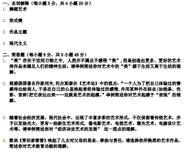 北京城市学院考研辅导班:北京城市学院2019年考研《艺术基础》入学试题