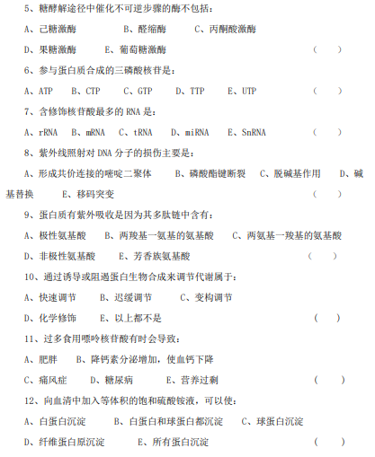 天津商业大学考研辅导班:天津商业大学2019年考研808生物化学真题