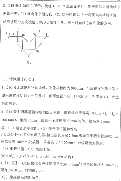 安徽师范大学考研辅导班:2018年安徽师范大学考研703应用光学真题
